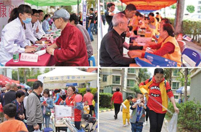 環(huán)境保護類服務(wù)項目也得到了大家的積極響應(yīng)。社區(qū)義工隊、豐潤幼兒園、管理處攜手開展清潔家園活動,大手拉小手,共同撿拾垃圾,為社區(qū)營造干凈整潔的環(huán)境。社區(qū)居民紛紛捐贈舊書舊衣物到龍華區(qū)零廢棄促進會的資源回收攤位,把家里的過期藥品送到海王星辰的過期藥品攤位回收點,共同為環(huán)保做貢獻。