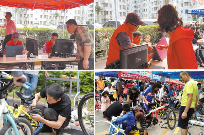 深物業(yè)集團信息中心、深圳國貿(mào)物業(yè)智能運營部的志愿者們用專業(yè)技能為居民修電腦、修手機。一位阿婆拿著兩部老人手機過來心急地說:“好久沒用這兩部手機,開不了機,是不是壞了?”志愿者接過手機立即認(rèn)真檢查,并告訴阿婆:“奶奶,你的手機應(yīng)該長按這個鍵開機。兩部手機都能開機,只是一部沒有插通訊卡,另一部手機可能欠費了。”志愿者一遍又一遍耐心地教會阿婆如何操作。