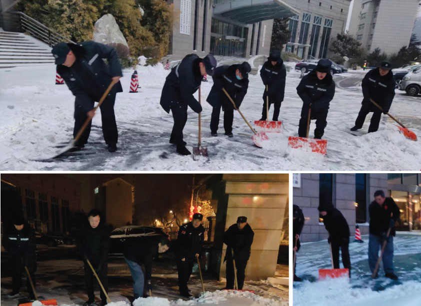 降雪即動、隨下隨清,在此次降雪清掃過程中,難度之大超出尋常。然而,山東深國貿(mào)公司全體員工以實(shí)際行動堅(jiān)守崗位,奮戰(zhàn)在冰雪之中,清掃出了一條條“安全路”,壘起了一道道“防雪墻”。面對極端天氣,國貿(mào)物業(yè)人以最快速度奔赴一線,以最大力度清除積雪,以最熱溫度保障業(yè)主安全通行,為他們營造安全舒適的居住、辦公環(huán)境。