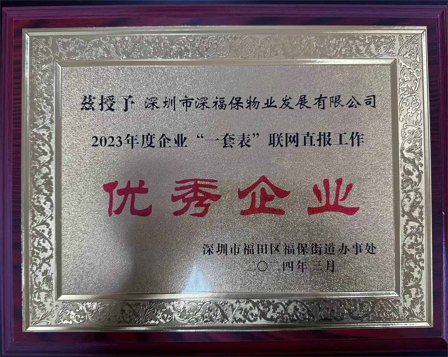 國(guó)貿(mào)福保物業(yè)榮獲福保街道2023年度企業(yè)“一套表”聯(lián)網(wǎng)直報(bào)工作“優(yōu)秀企業(yè)”稱(chēng)號(hào)